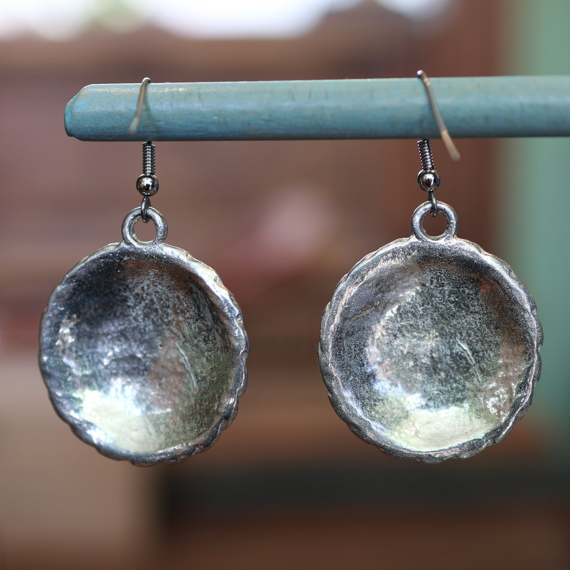 Large Moon Face Silver Earrings