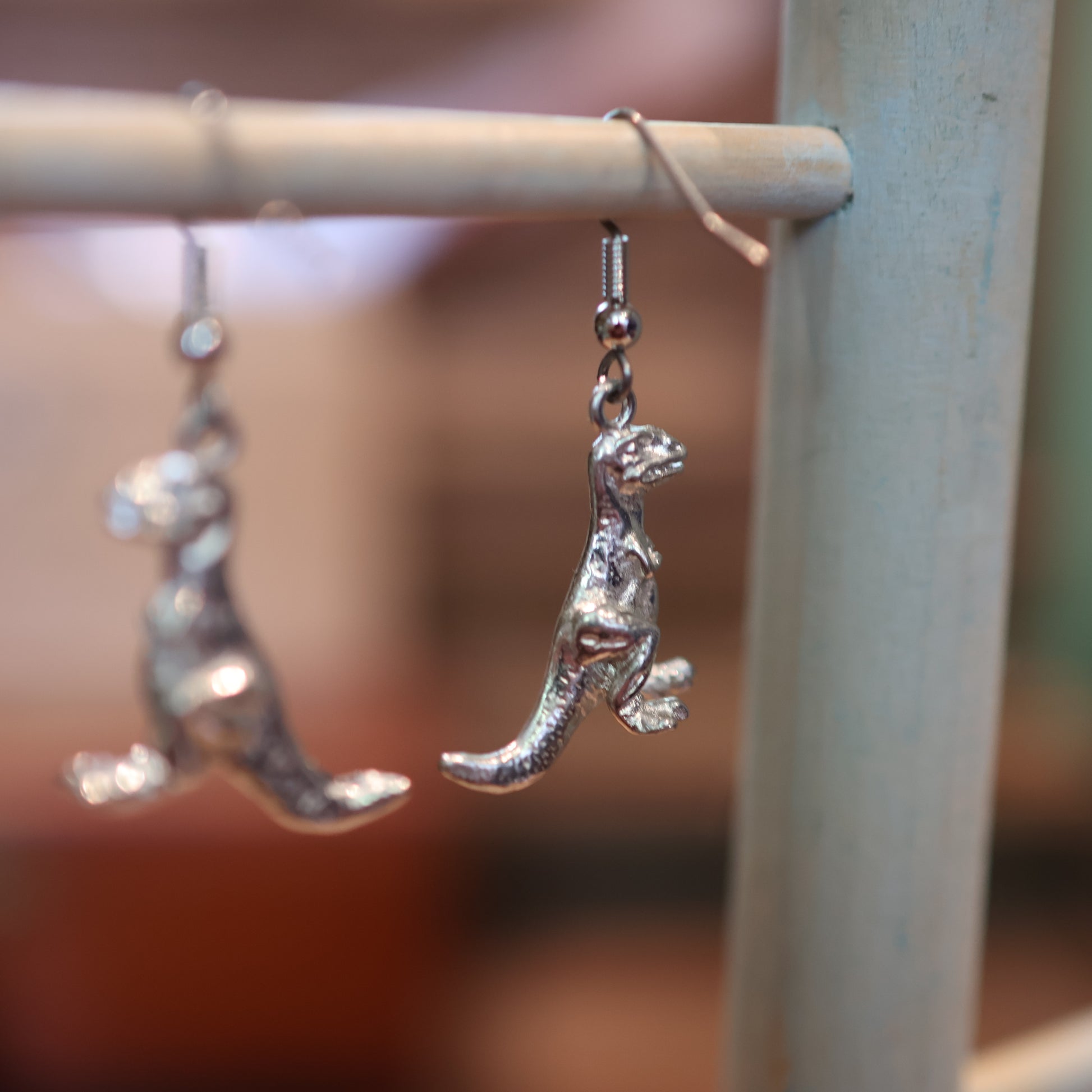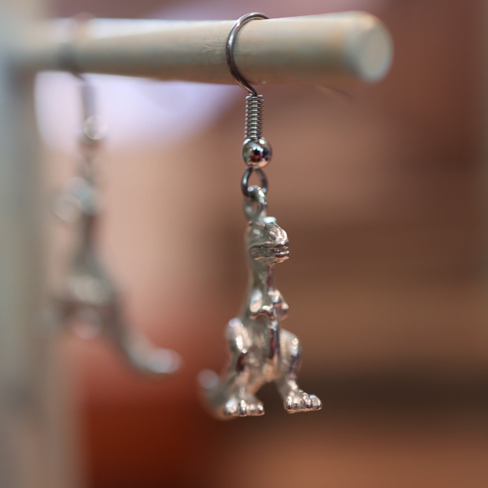 Little Terror Tyrannosaurus Silver Dinosaur Earrings